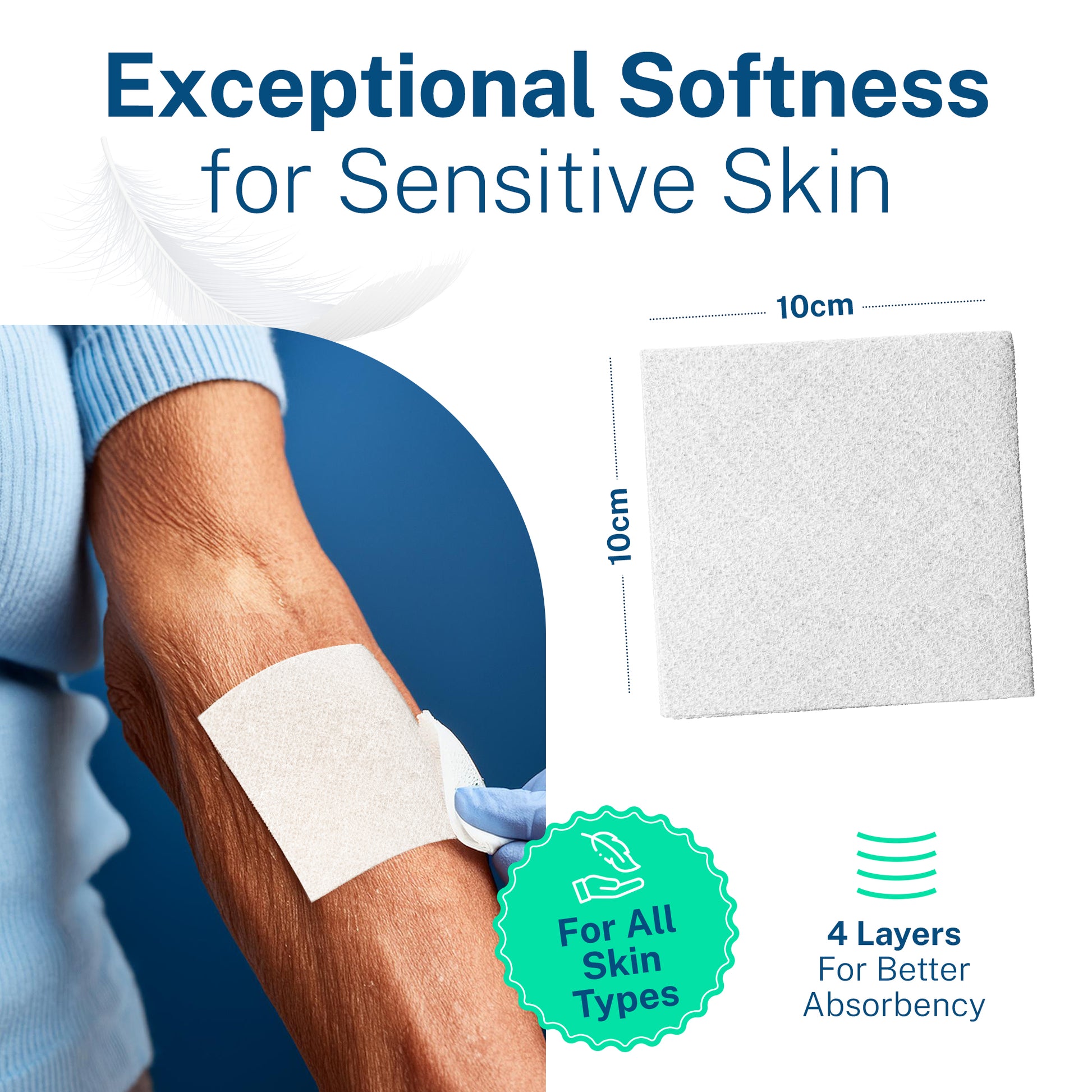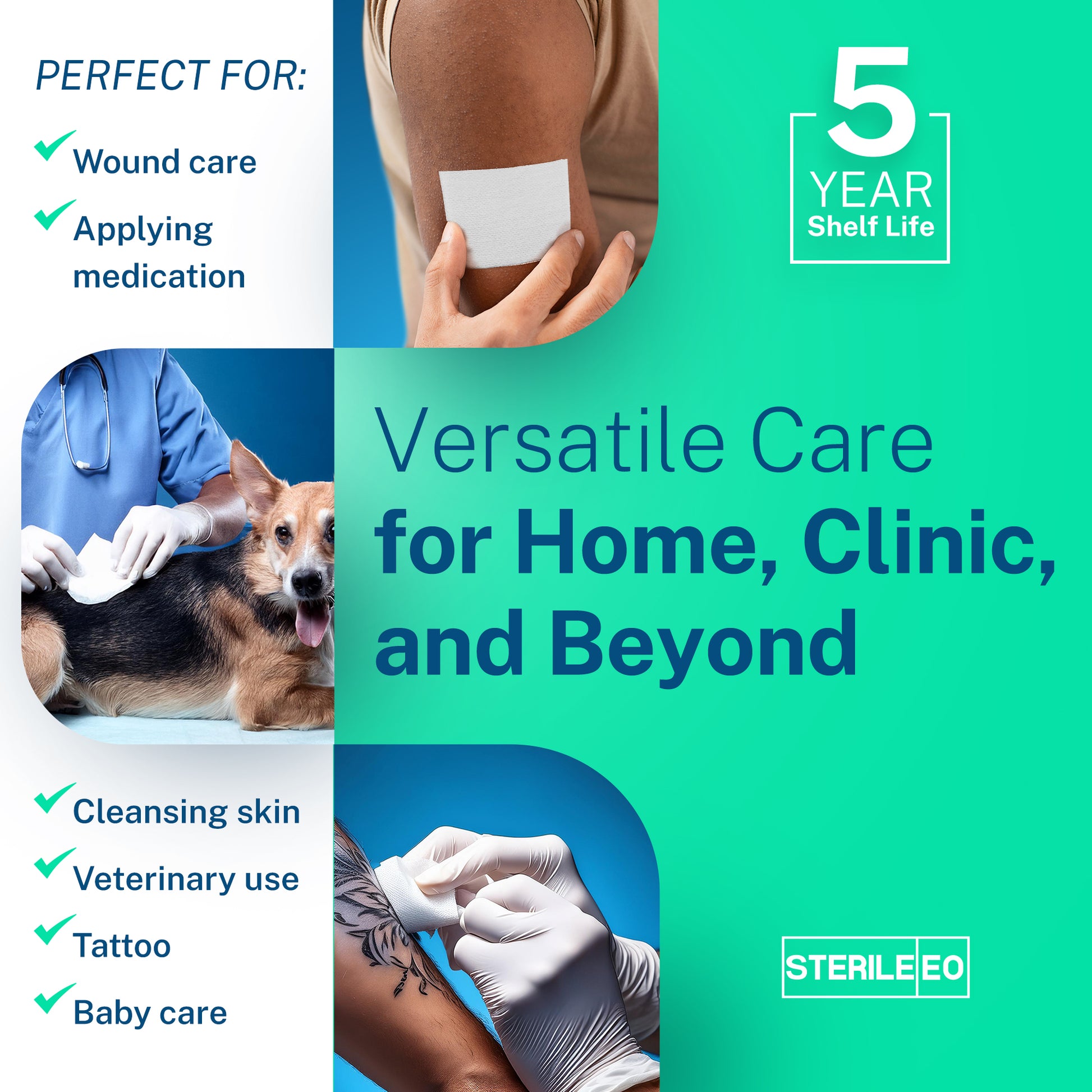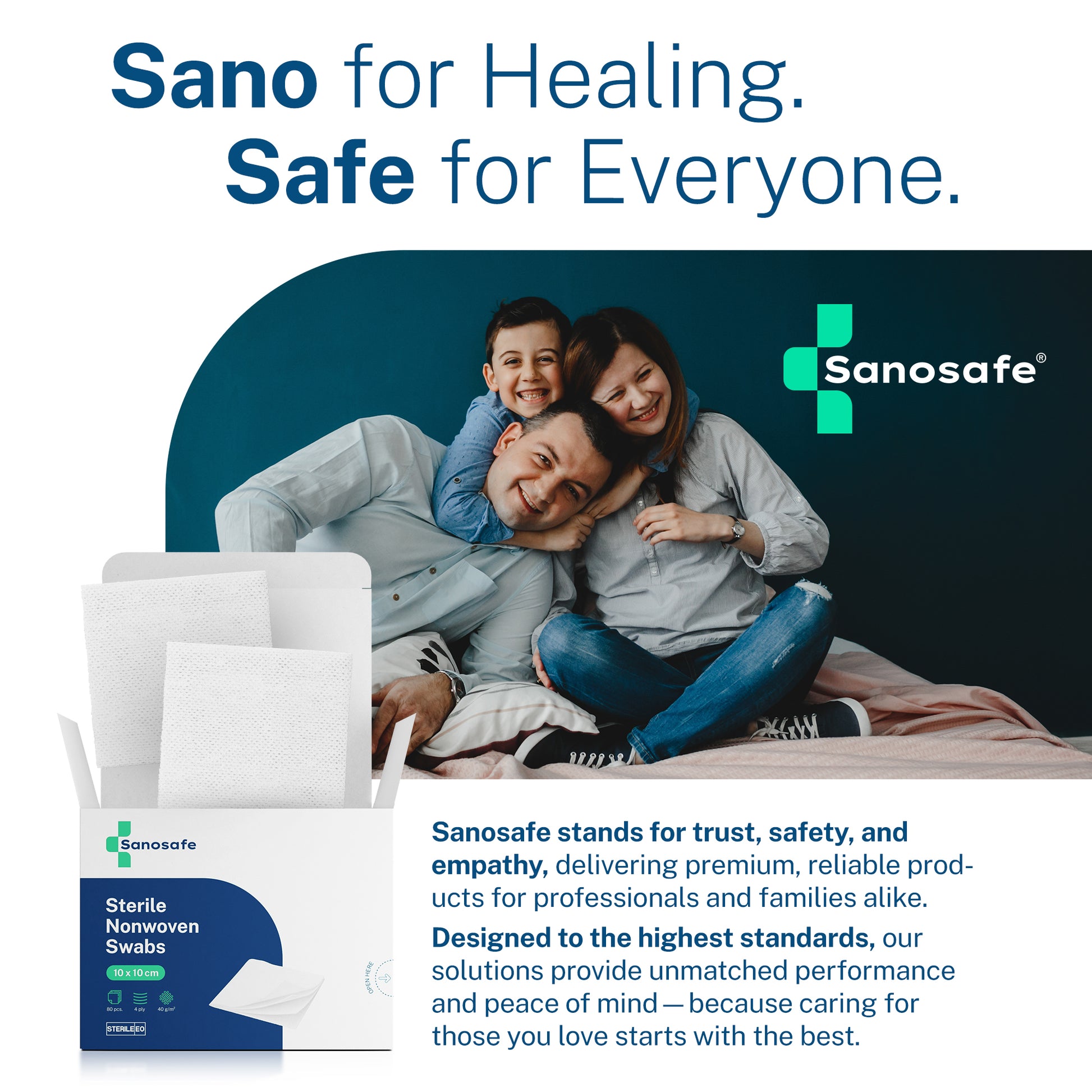 Sanosafe sterile non-woven swabs combine extra-soft texture, high absorbency and a lint-free structure – ideal for safe, comfortable and hygienic wound care. They are suitable for cleaning wounds, changing dressings after surgery, or daily skincare at home. These medical compresses are EO-sterilised and manufactured under strict quality standards to ensure maximum hygiene. Certified as a medical device in accordance with EU Regulation 2017/745 (MDR) and marked with the CE symbol, they offer excellent safety and quality. The non-woven, skin-friendly material is particularly suitable for sensitive areas. The swabs are packed in sterile individual pouches with 5 pieces per pouch for easy and hygienic use – perfect for both professional healthcare and everyday first aid at home. Sanosafe stands for gentle and dependable wound care – for anyone who values quality, safety and comfort in daily care routines.